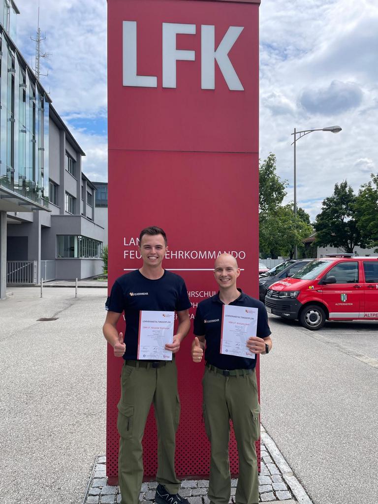 14-18. Juli 2025 Linz Nach einer Woche intensive Ausbildung mit vielen praktischen Einsatzübungen an der Landesfeuerwehrschule in Linz konnten heute unsere Kameraden Alexander Mühlberger und Wolfgang Hartl nach einer theoretischen und praktischen Abschlussprüfung den Gruppenkommandantenlehrgang erfolgreich abschließen. Wir gratulieren herzlichst! Fotos: FF-Veitsdorf